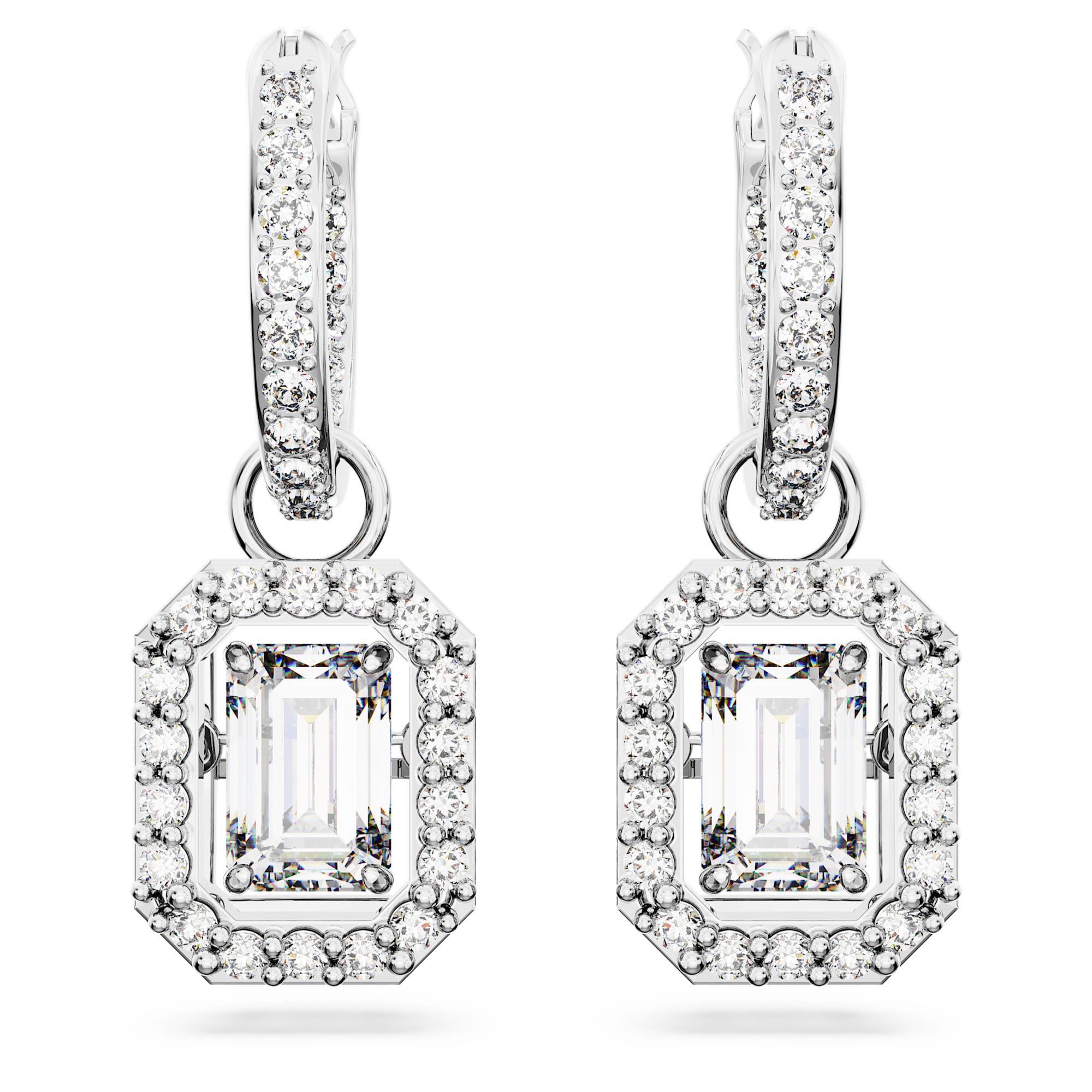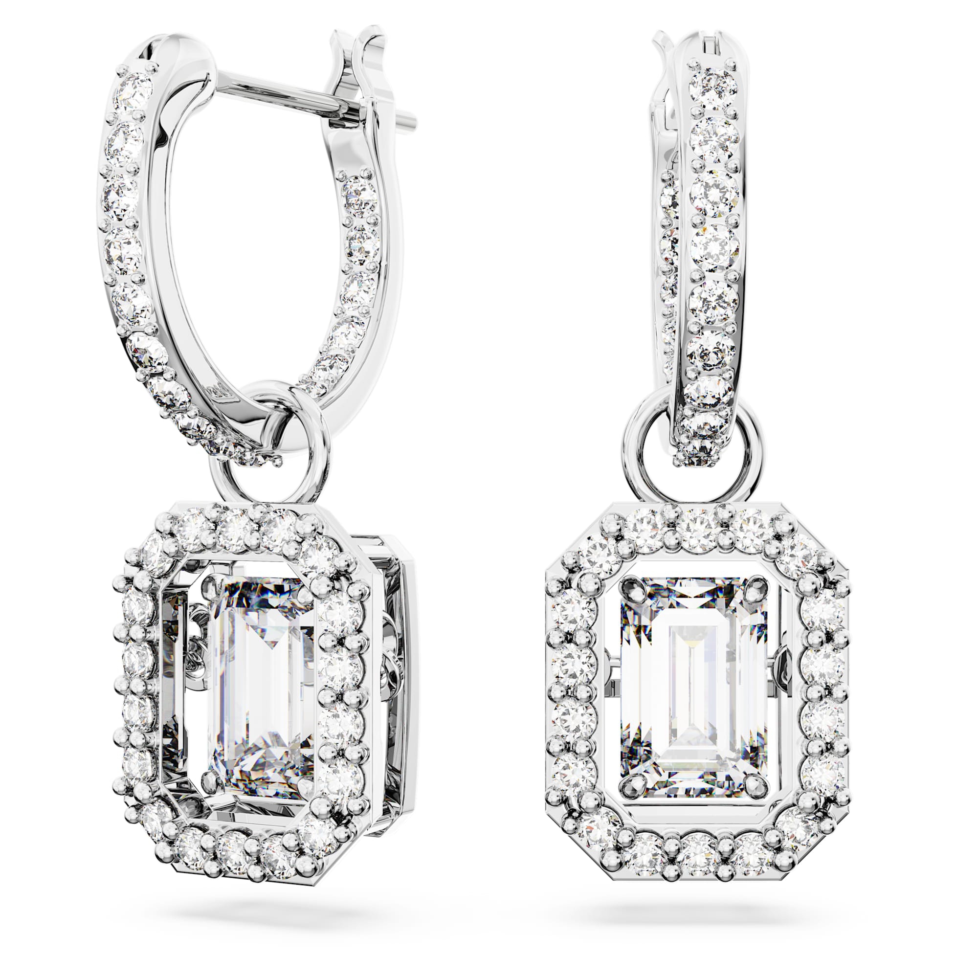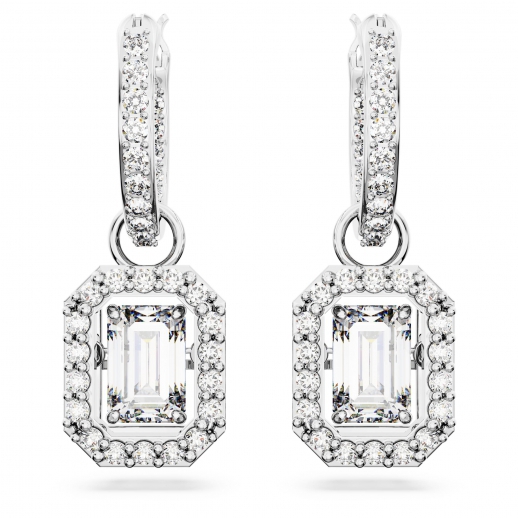 Impreziosisci il tuo guardaroba quotidiano con questi squisiti orecchini pendenti della linea Una. In questo paio di orecchini placcati rodio, le dancing stone dal taglio ottagonale sono incorniciate elegantemente da cristalli pavé. Grazie alla versatile colorazione trasparente, sono perfetti da indossare da soli o insieme ad altri variopinti gioielli, per un ricercato tocco finale.