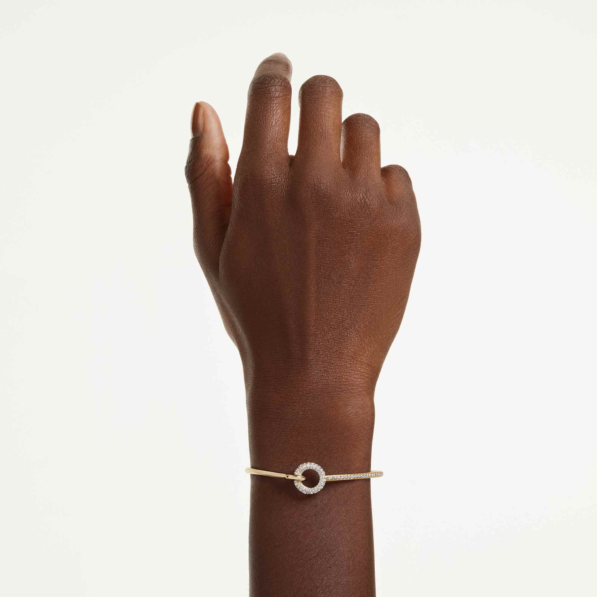 Realizzato con un design metà in metallo e metà in pavé, lo straordinario bangle Dextera prende vita con cristalli Cry incastonati su una superficie lucida placcata in tonalità oro. L'effetto è un bellissimo contrasto e una piacevole geometria circolare che potrai indossare più e più volte.