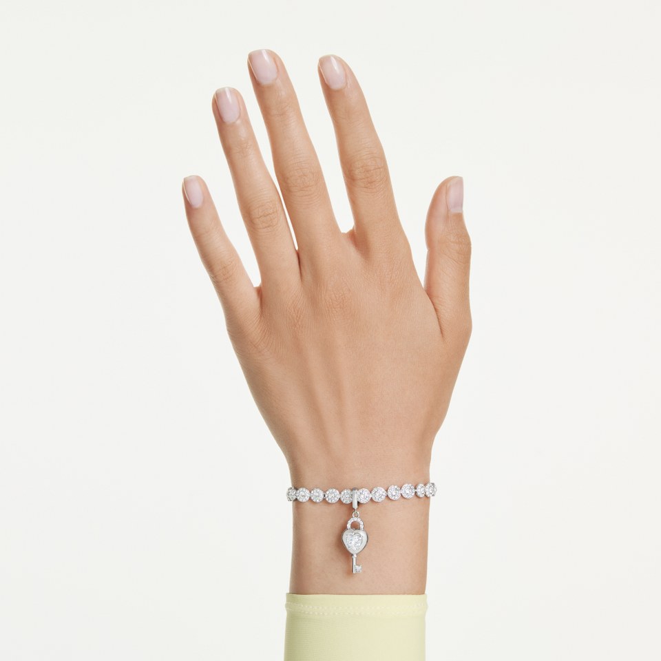 Aggiungendo un tocco personale al tuo stile quotidiano, i charm Swarovski sono compatibili con diversi gioielli delle famiglie Matrix, Una e Idyllia. Il cuore con chiave ispirato a un medaglione è la scelta ideale per chi ha uno spirito romantico. Decorato con una Swarovski Zirconia centrale, il design placcato rodio presenta un'innovativa chiusura che ti permette di indossare il charm su diverse collane e bracciali.