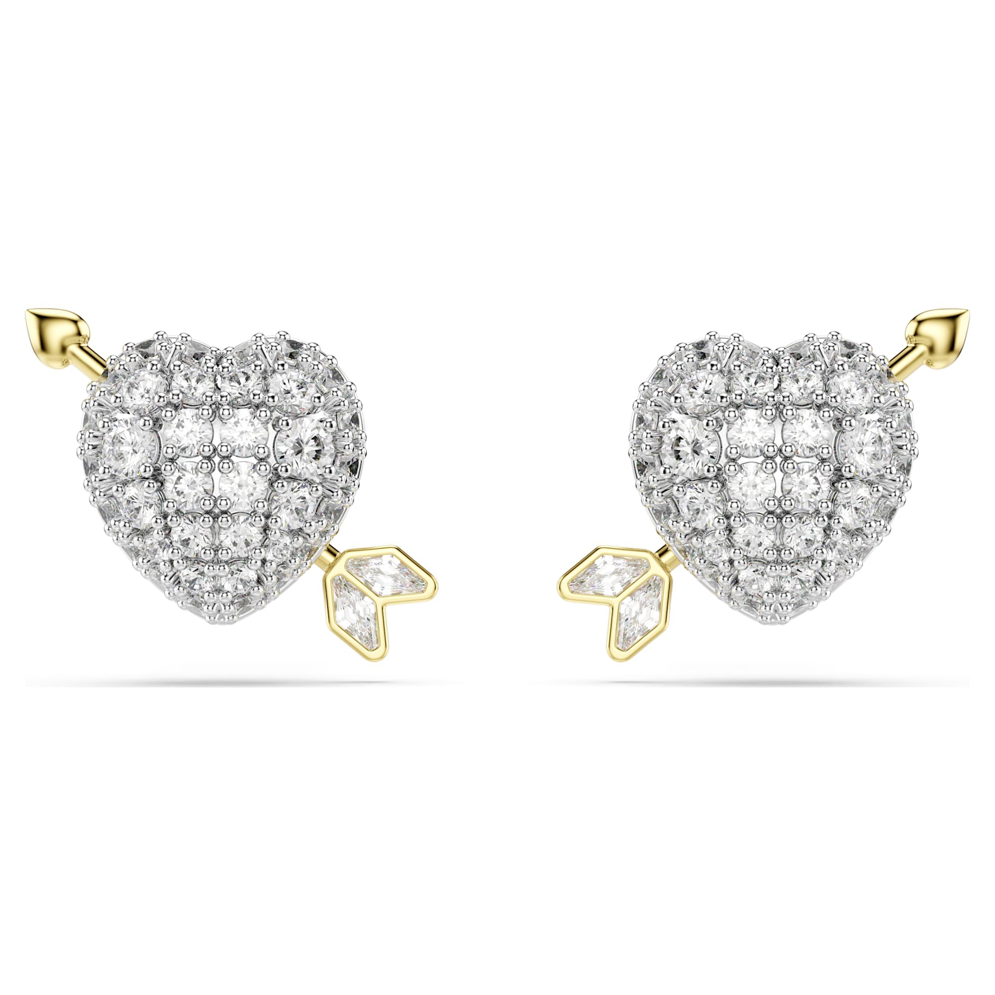 Festeggia il vero amore con gli orecchini a lobo Idyllia a forma di cuore. Ogni creazione presenta un cuore placcato rodio con scintillanti Swarovski Zirconia, trafitto dalla freccia di Cupido placcata in tonalità oro. Un modo discreto ma espressivo per definire il tuo stile personale.