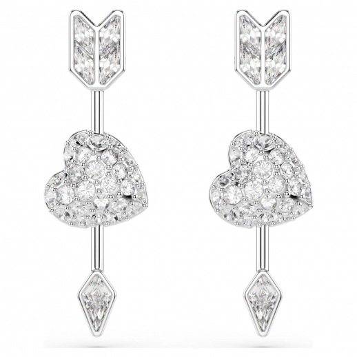 Cupido colpisce due volte in questi espressivi orecchini Idyllia. Ciascun gioiello placcato rodio presenta un cuore trafitto da una freccia, con scintillanti cristalli Cry trasparenti su un lato e un vivace colore rosa sull'altro. Invertili tutte le volte che vuoi per opzioni di stile versatili.