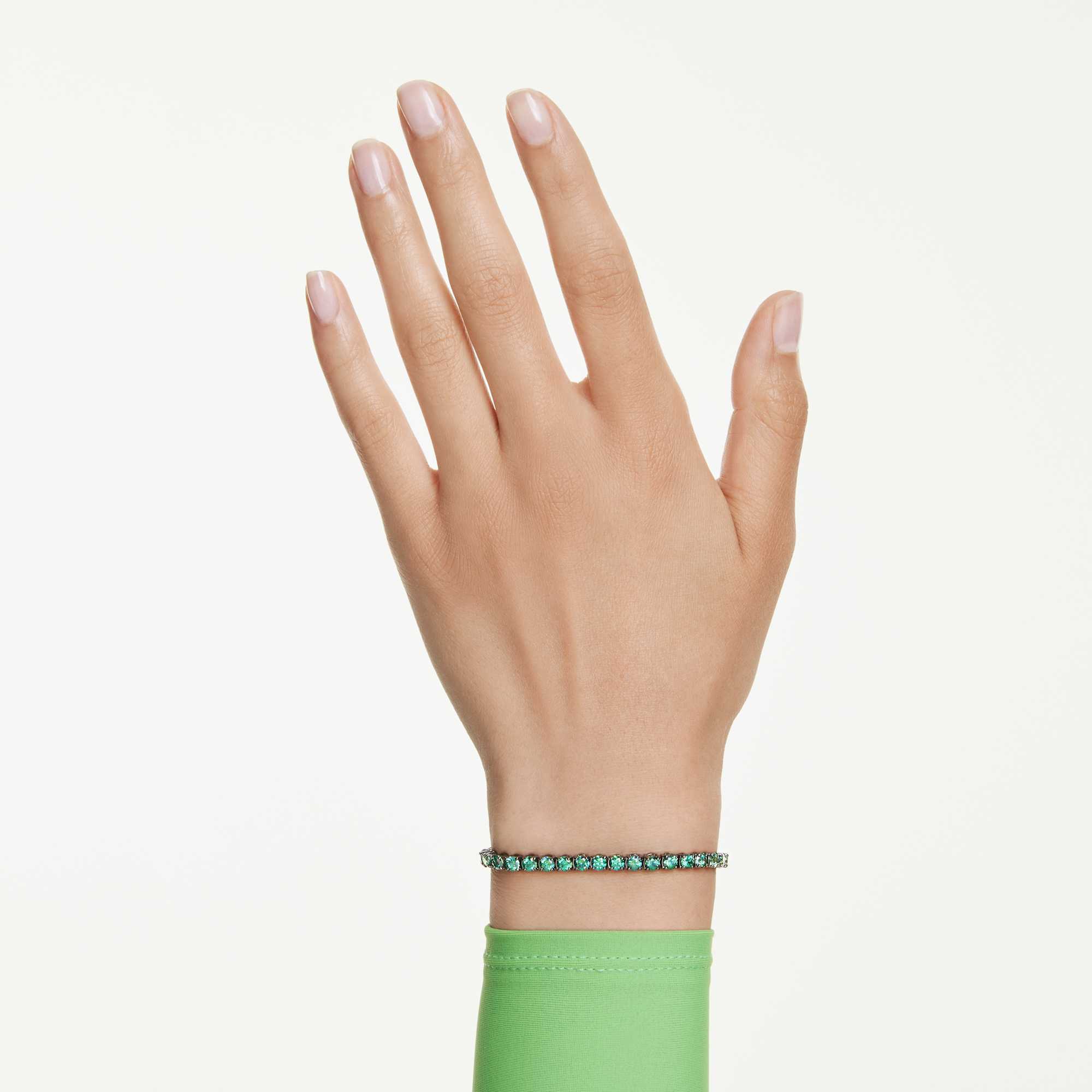 Lo scintillante bracciale Matrix Tennis presenta la moderna combinazione di affascinanti Swarovski Zirconia verdi e placcatura in rutenio dal tono freddo. Una fila uniforme che cattura meravigliosamente la luce e rivela profondi riflessi di colore. Goditi questo intramontabile gioiello per te o consideralo come una splendida idea regalo.