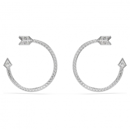 Trasformando il classico stile a cerchio in un paio di frecce di Cupido, gli orecchini Idyllia combinano unelegante placcatura rodio con una varietà di tagli di cristallo Cry. Indossali per dare un tocco romantico al tuo stile e abbinali agli altri gioielli a forma di freccia della nostra gamma Swarovski.