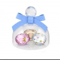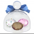 Celebrando la stagione dei nuovi inizi, il design giocoso presenta tre uova sfuse sotto una cupola di vetro trasparente. Insieme a un uovo con leffetto Golden Shadow di Swarovski, cè anche un uovo con flatback multicolore e un uovo rosa impreziosito da fiocchi giallo chiaro. Legato con un nastro in gros-grain blu, lintero design è realizzato con 969 sfaccettature, creando un elemento centrale che riflette la luce e che può essere disposto liberamente come più desideri.