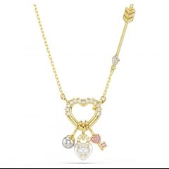SWAROVSKI Pendente Idyllia, Taglio misto, Cuore, chiave, Rosa, Placcato color oro SWAROVSKI_5737288