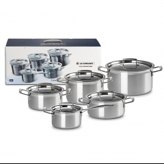Le Creuset Batteria 5 Casseruole in acciaio: 3 casseruole alte con coperchio 18, 20, 24cm, pentola con coperchio 20cm, casseruola manico lungo 16cm LE CREUSET_96209400001000